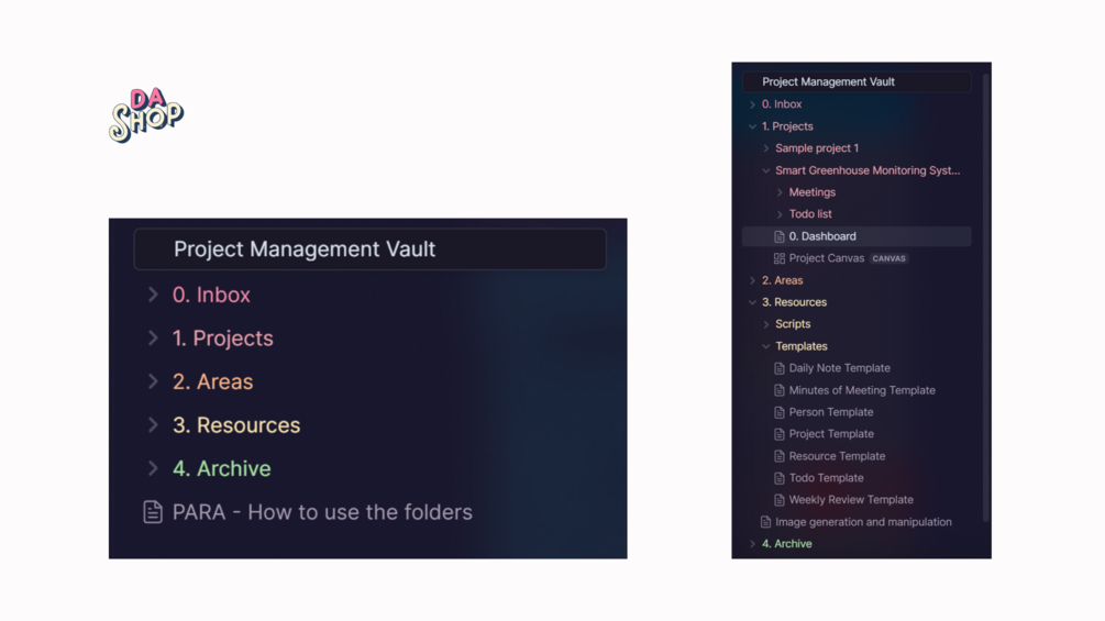 - Customized PARA Structure for Optimal Organization: Navigate through our thoughtfully named folders - '0. Inbox', '1. Projects', '2. Areas', '3. Resources', '4. Archive' - each designed to streamline the storage and retrieval of your project data. This structure ensures that everything, from urgent tasks to archival materials, is just a few clicks away.